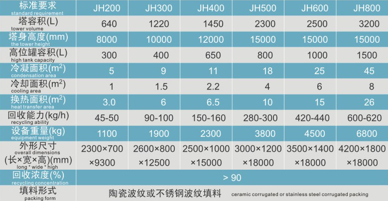 酒精回收塔由塔釜、塔身、冷凝器、冷卻器、緩沖罐、高位貯罐六個部分組成,可用于制藥、食品、化工等行業的稀酒精回收,本設備與物料部分均采用OCr18Ni9不銹鋼制造,具有良好的耐腐蝕性能,經久耐用。